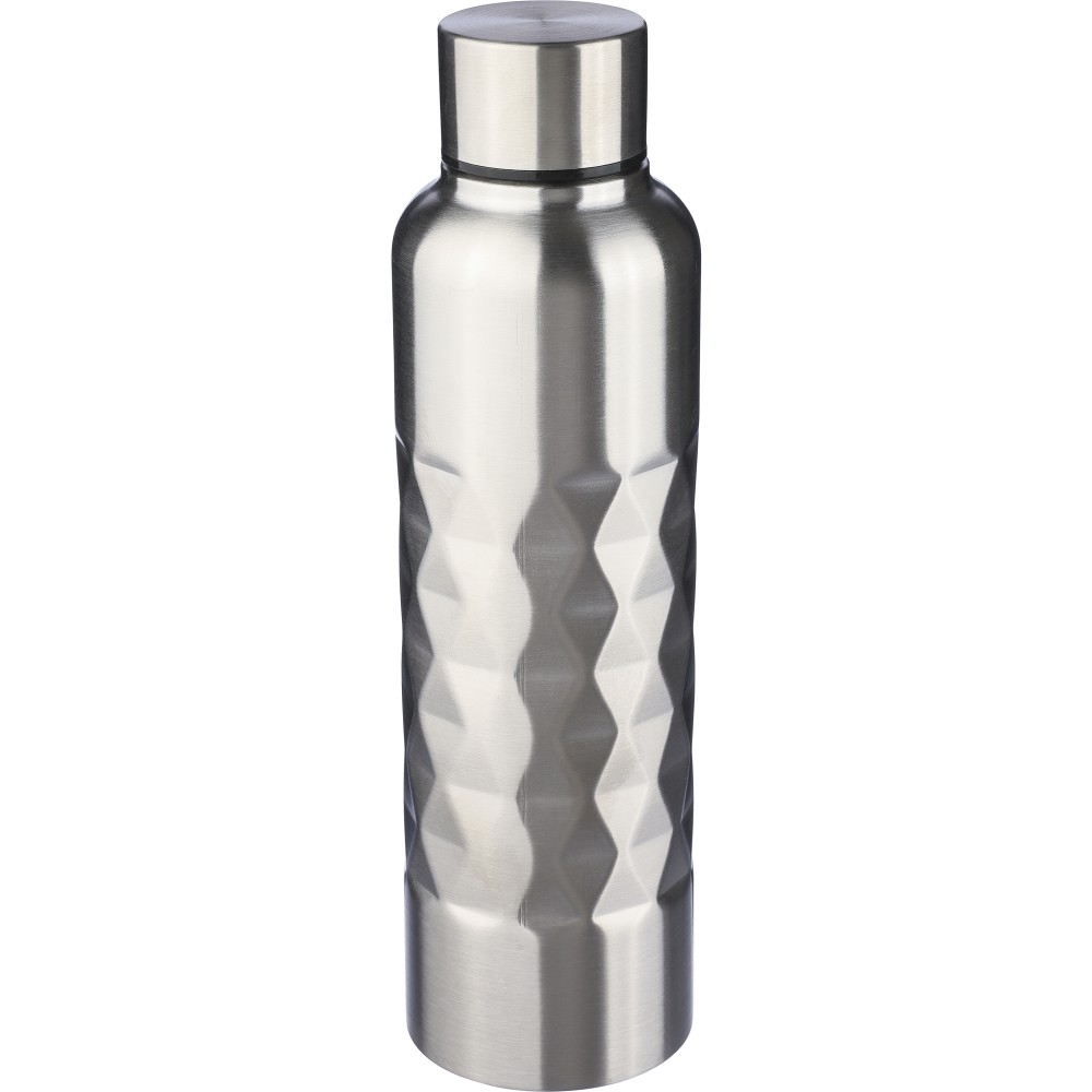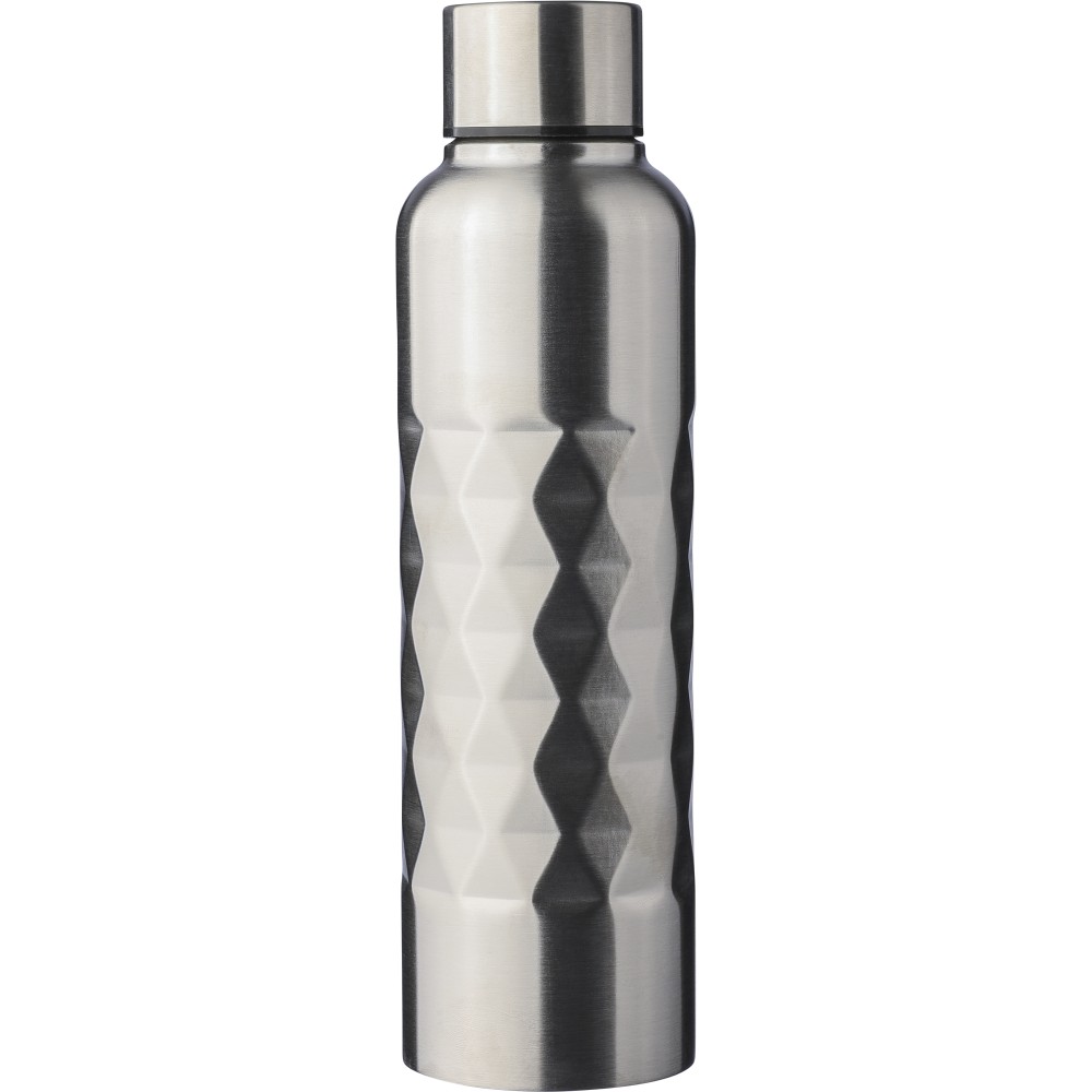 Újrahasznosított 304-es rozsdamentes acélból készült szimplafalúkulacs, 800 ml-es. Gyémánt alakú textúrával a testen, csavaros tetővel és lézergravírozott újrahasznosított logóval. Egyenként csomagolva, barna kartondobozban.